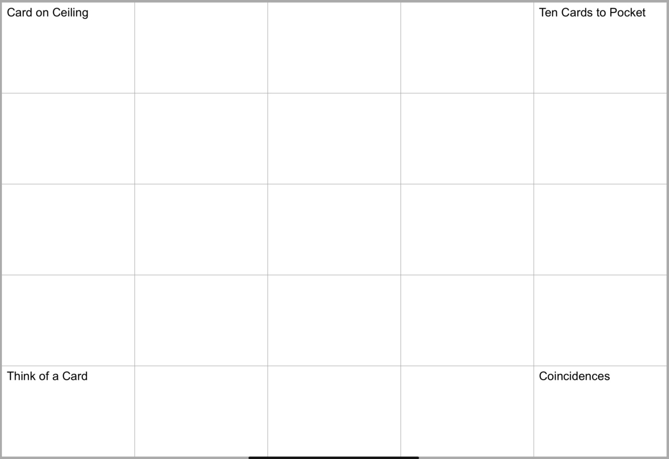 Also, I admit difficulties in introducing the at-the-card table type of tricks, sucker demos, poker plots, dealing procedures. In fact, this may just mirror a common understanding that those types of tricks, as entertaining and impressing they may be, can be considered slightly outside of magic. What about finding criteria suited for only those sort of tricks to generate specific Maps for At-the-Card-table tricks!? Sleight-of-hand is a universe with many planets and just one single Map won't do.