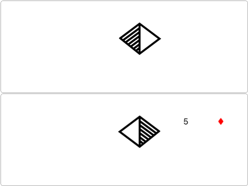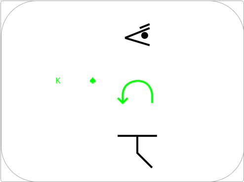 2. The symbols are parametrized for additional context: the card's suit and value, its position in a deck (e.g. a break below the 3rd from top), whether a position is face up or face down, or whether an action delivers a card in either face up or face down condition (e.g. deal a card in face up or face down manner).
