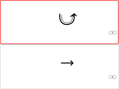 - on actions, arrows pointing up signal an action that delivers a card in a face down (i.e. in an back-up) condition, and vice versa.