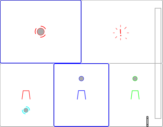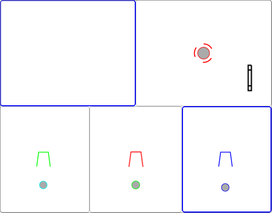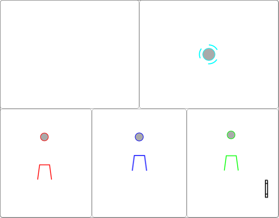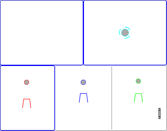 Spaces can be set for each view according to the information to be delivered. For a Cups and Balls routine the most typcial Space-set is the 'left hand, right hand - table left, centre, middle' set