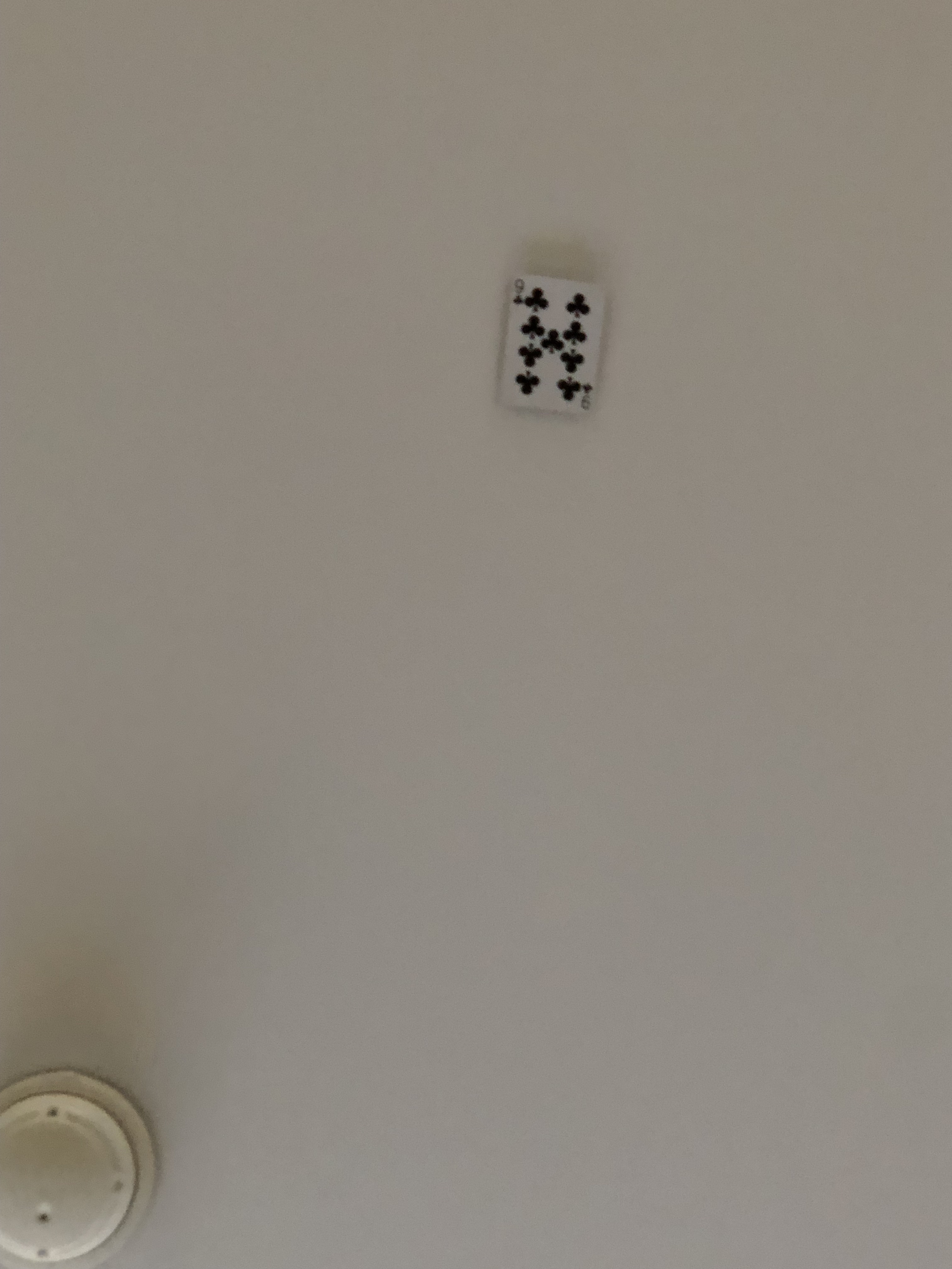 Card-Up® addresses the Card to Ceiling effect. To my best knowledge, it is the only solution that was designed from the ground up to avoid the known smearing and residuals problems, the unwanted side-effects with other commercially available products. I offer two formulations to account for different pick-up conditions, which, again, makes Card-Up® a unique offering. Both variations are extremely reliable. See also the images below with cards high up resulting from real throws.
