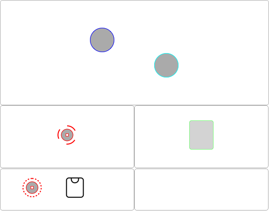 A palmed or otherwise hidden coin is represented by a dashed line around the coin symbol.